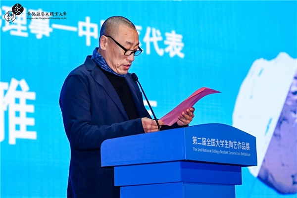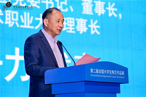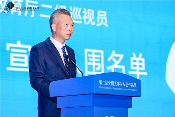 张龙在致辞中指出,景德镇以数字化服务赋能展览举办,通过专属小程序、AIGC互动展陈与“云参观”等形式,推动陶瓷艺术突破时空界限。他表示,“天工开物·智韵瓷章”的主题诠释了传统智慧与当代创新的交融,期待青年学子以文化自信为基、创新创造为翼,勇立陶瓷艺术潮头,成为中华优秀传统文化的传承者与中外文明互鉴的推动者。